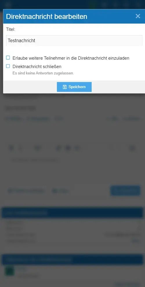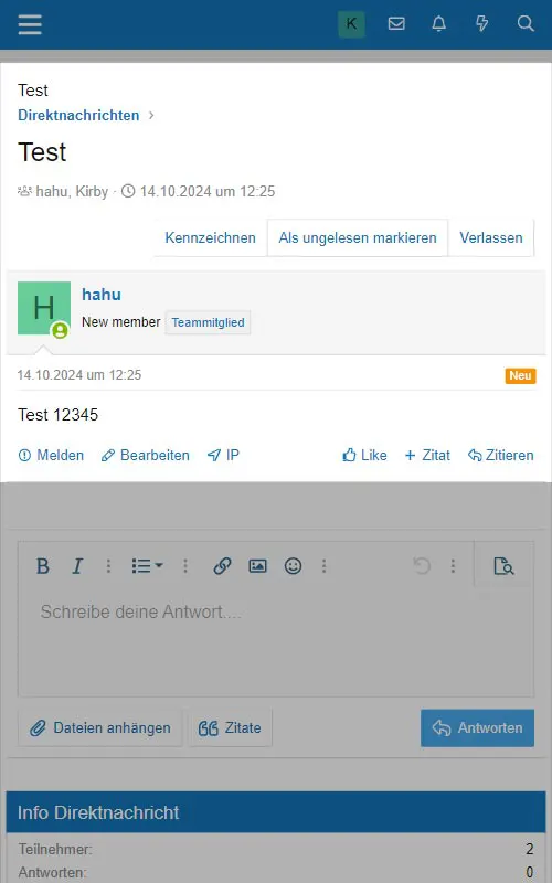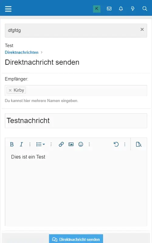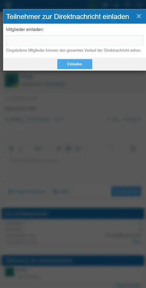 Falls die Direktnachricht über ein Benutzerprofil gestartet wurde, so ist dieser als Teilnehmer bereits vorgemerkt. Es können, je nach Einstellung des Forums, noch weitere Benutzer zur Direktnachricht eingeladen werden.