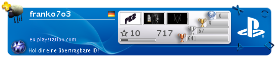 Aber ich machs wie gesagt immer ernshaft, ich füge das auch chronologisch ein, sodass die karte exakt so aussieht als wenn man auf mein profil im PSN klicken würde...